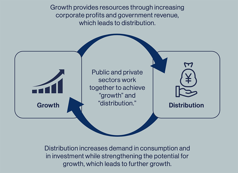 I will also launch new mechanisms to inspire investment and change the way of sharing added values. I will integrate them into both growth and distribution strategies to achieve a full-scale “twin-engine of growth and distribution.”
