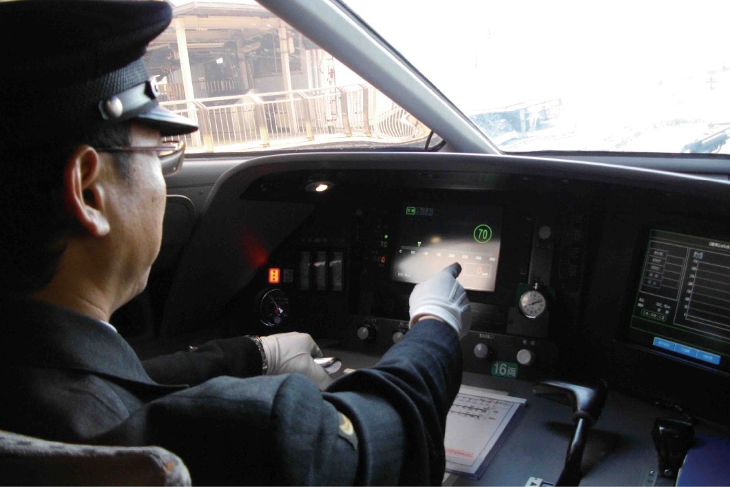 Reliability is another achievement of the Shinkansen, which is renowned for its on-time service. The system is supported by all manner of hardware and administrative systems, including specially designed high-speed rail tracks, automatic train control (ATC), and automated train schedule management, to ensure that the trains run on time. A careful melding of hardware and software allows this equipment—combined with the finely honed technical skills of the operators—to control the trains down to the second, and to ensure precision and reliability in operation. As a result, this system makes it possible for the trains to run at such very tight, three-minute intervals, without schedule delays, averaging less than one minute in duration.