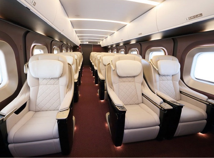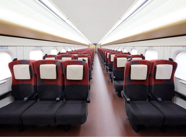 The Shinkansen is also noted for what it has to offer in terms of passenger comfort and transportation capacity. The train’s tilting mechanism to lean into curves at high speed and the high-quality airtight body minimize vibration and provide a smooth, quiet ride. The large body of Shinkansen cars, which are wider than those of other high-speed trains, offers comfortable, wide passenger seats while ensuring large passenger capacity; the standard 16-car train can carry more than 1,300 passengers. This is only possible because from the very beginning, the facilities were designed to be used exclusively by high-speed trains. Thus, the Shinkansen has advantages over other countries’ rail systems, which have been developed under constraints imposed by the standards of existing tracks.