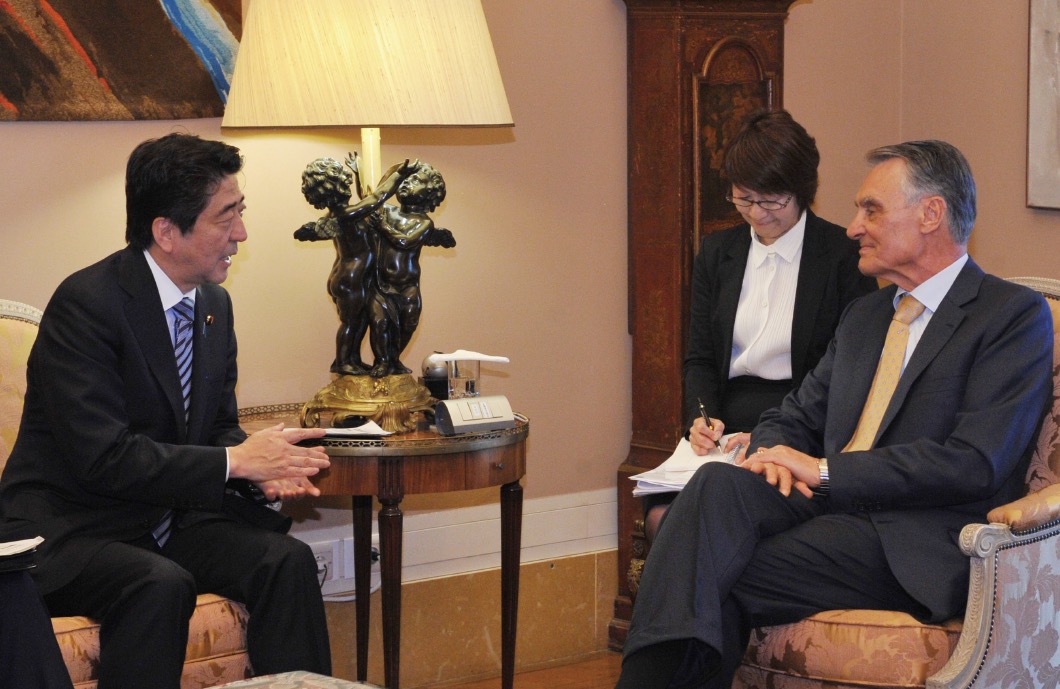 The prime minister pays an informal visit to President Anibal Cavaco Silva during a trip to Portugal.