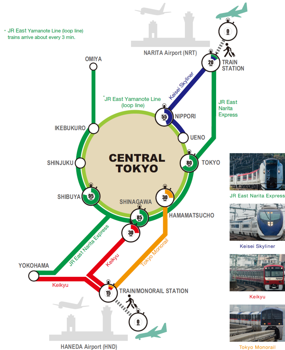 There was a time when a person getting off an airplane after a long journey would feel depressed just thinking about the destination still ahead. However, anyone familiar with how convenient access from Japanese airports has become in recent years will have no need for such worries. Let us explain, using Tokyo as an example.