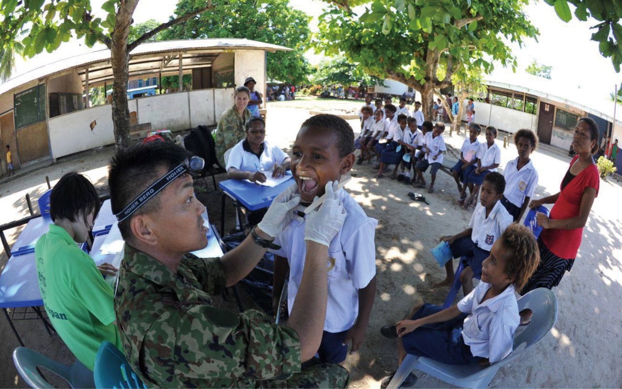 The Pacific Partnership is the name given to activities hosted by U.S. forces started in 2007. The activities are aimed at strengthening mutual collaboration among participating nations and promoting smooth implementation of international disaster relief activities, while visiting countries in the Asia-Pacific region by ship, and providing medical care and exchanging cultures with local residents in cooperation with governments, militaries, international organizations, and civilian organizations such as NGOs. The MOD has been deploying medical personnel from the Maritime Self-Defense Force annually since 2007, and they have been participating in medical activities and engaging in cultural exchange with local residents.