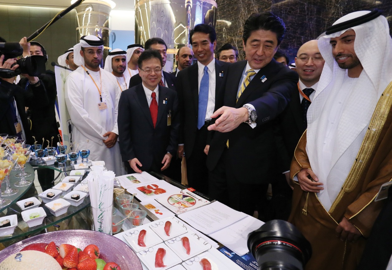 Promoting Japanese cuisine at the Business Forum held in Abu Dhabi, United Arab Emirates, May 2013.