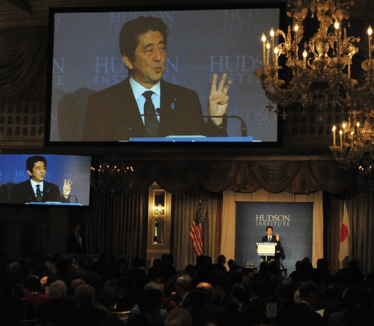 The Prime Minister offering greetings during an awards ceremony at the Hudson Institute, a think tank in Washington, DC, September 2013.