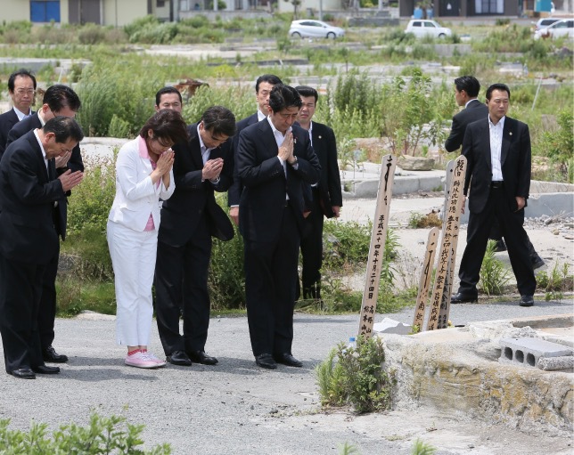 In July 2013, the Prime Minister is seen offering prayers for the people who died in the area devastated by the tsunami that hit Iwaki City, Fukushima Prefecture on March 11, 2011.