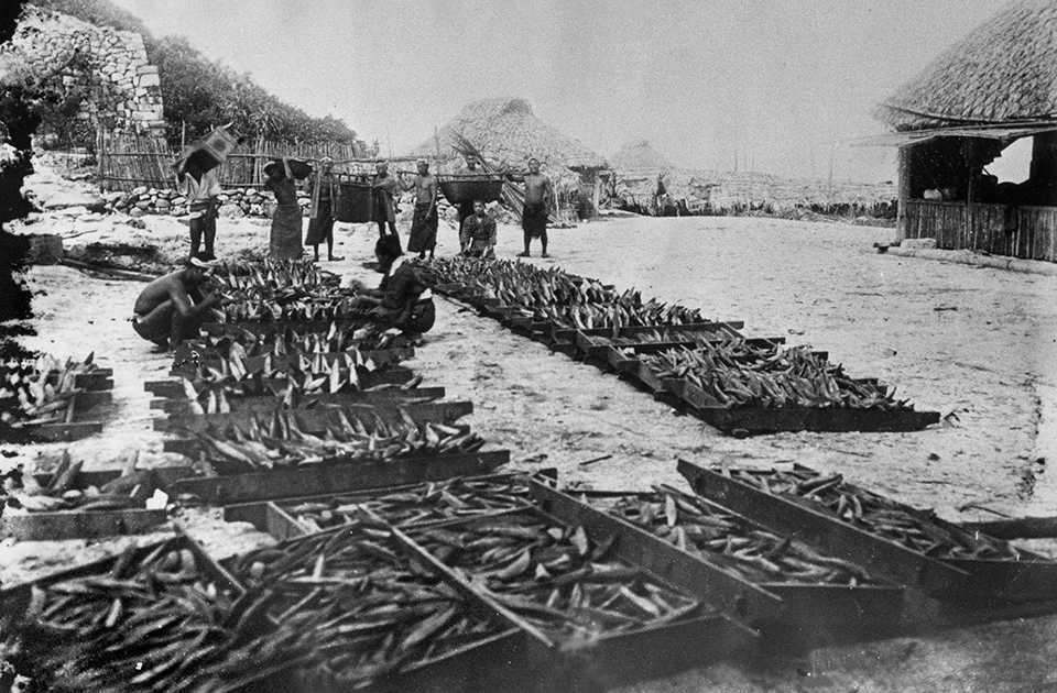Residents of Uotsuri Island on the island during the Meiji era (1868-1912).