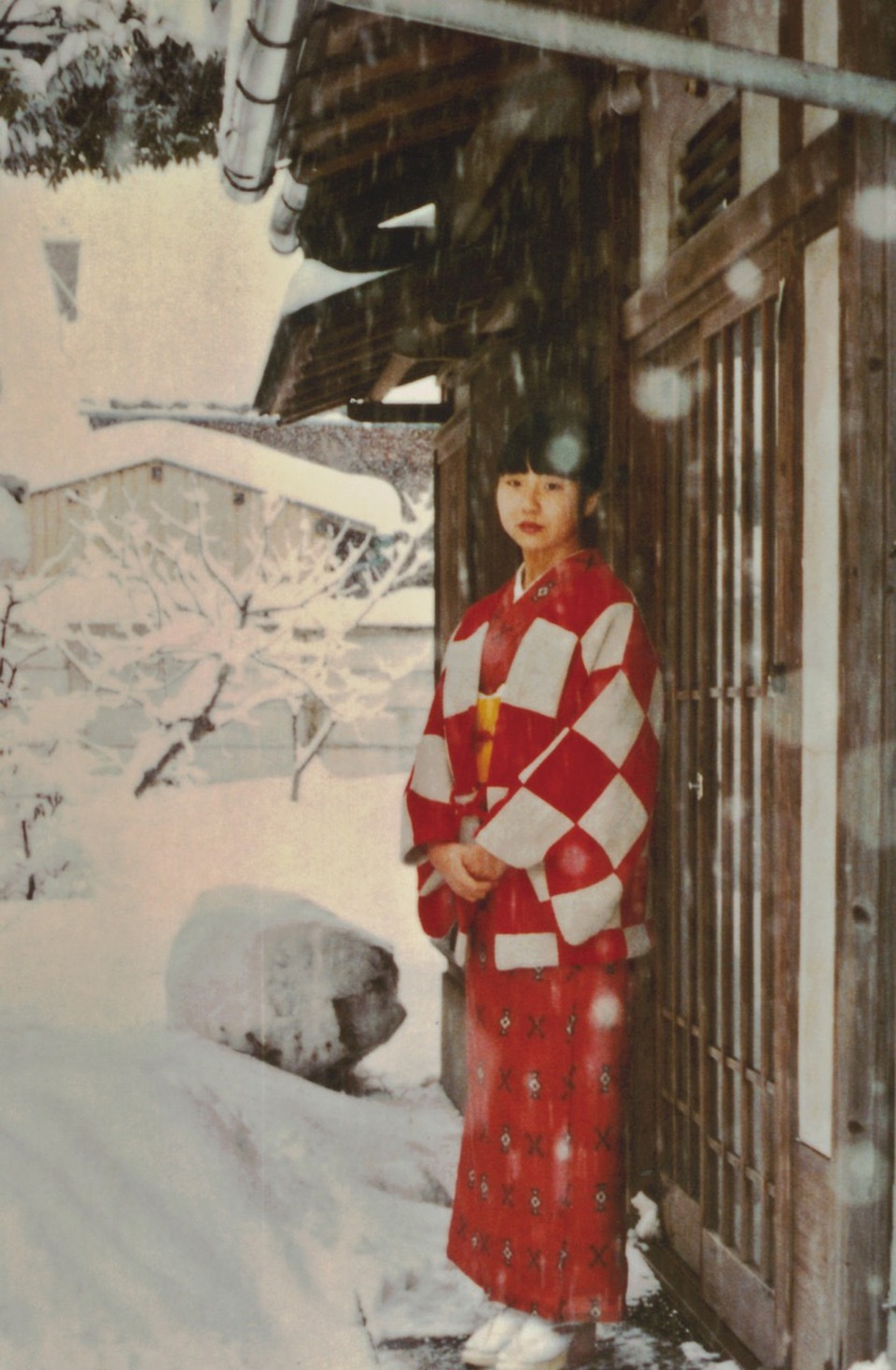 Megumi Yokota poses in front of her home amid a backdrop of snow. The picture, taken by her father. Shigeru, to commemorate his daughter entering middle school, depicts the beginning of a bright future for the young woman. Megumi was abducted in 1977.