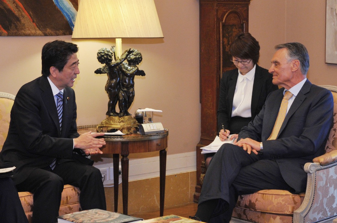 The prime minister pays an informal visit to President Anibal Cavaco Silva during a trip to Portugal, May 2014.