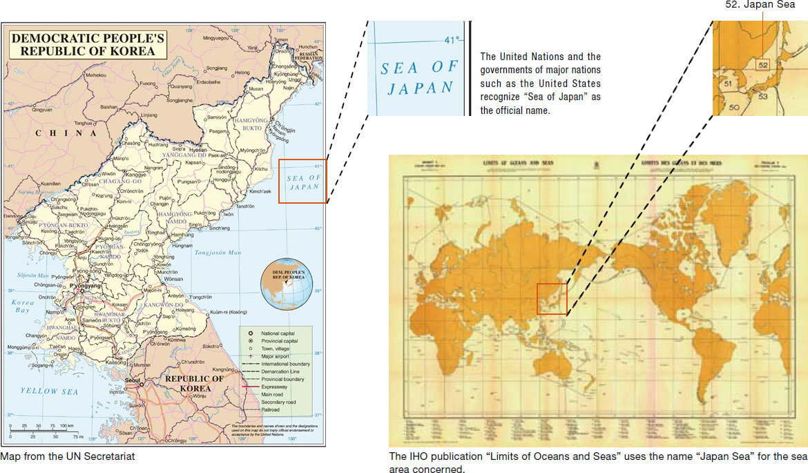 Countries around the world including the United States, the United Kingdom, France, and Germany use the name “Sea of Japan.” For example, the United States government has repeatedly stated that it uses the name, both on its website and through press conferences given by senior officials. The United Nations recognized “Sea of Japan” as the standard geographical term in 2004, and UN policy states that the standard geographical term be used in official UN publications. Furthermore, the International Hydrographic Organization’s Limits of Oceans and Seas, which includes names for the world’s seas, uses the name “Japan Sea.”