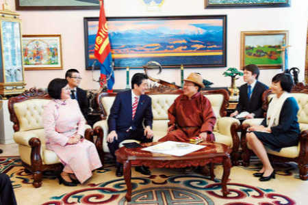 Prime Minister Abe visited Mongolia and five Central Asian nations, holding meetings with their leaders and taking part in a variety of events (October 2015).