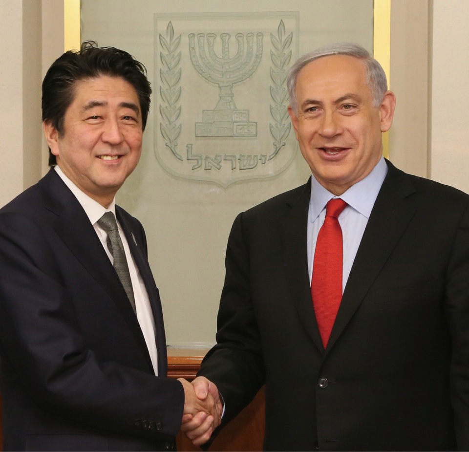 Prime Minister Abe at a bilateral meeting with Israeli Prime Minister Benjamin Netanyahu (January 2015).