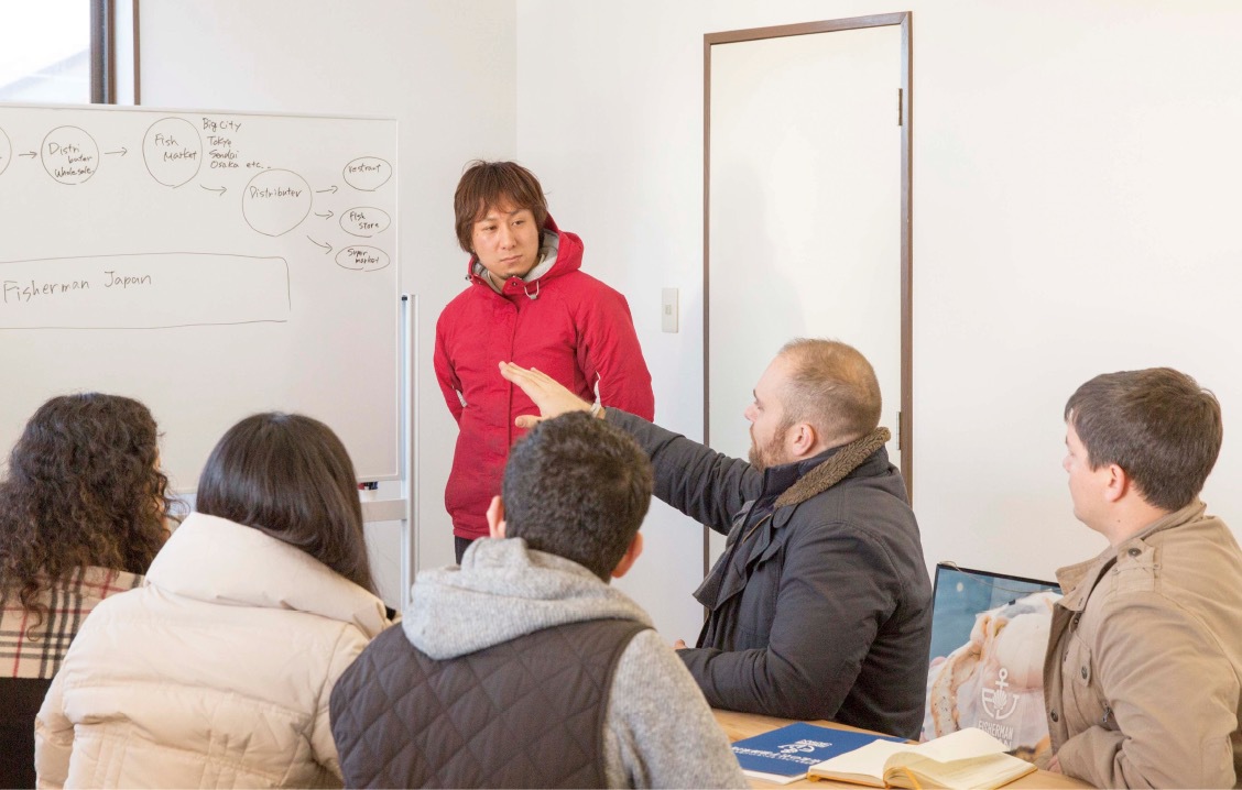 Five of the students visited a group of young fishermen and marine product retailers aiming to make changes in their industry. Yuki Tsuda runs fish shops based in Ishinomaki, Miyagi Prefecture, and he is working to raise the quality of marine products. “Branding, quality control, and marketing are important aspects of this business. I would like to establish unparalleled best practices that lead to a movement to increase the quality of all Japanese marine products.” Tsuda and his colleagues are looking for new markets at home and overseas and will branch out into Southeast Asia. “I want people in other countries to taste the fresh, high-quality fish we produce in Japan. And we also want to disseminate ways of eating fish and the culture associated with it to avoid having our products be thought of as ‘merely expensive.’”