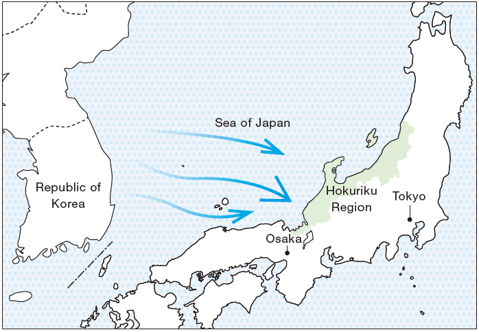 The Hokuriku region of Japan is facing the Sea of Japan.
