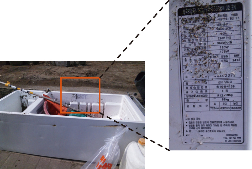 Even refrigerators wash up on the beach. The labels on most of them are in Korean.