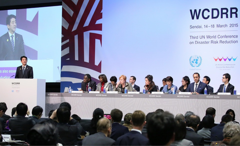 Prime Minister Abe attended the Third UN World Conference on Disaster Risk Reduction held in Sendai, Japan. During the conference he engaged in talks with world leaders and other notable figures (March 2015).