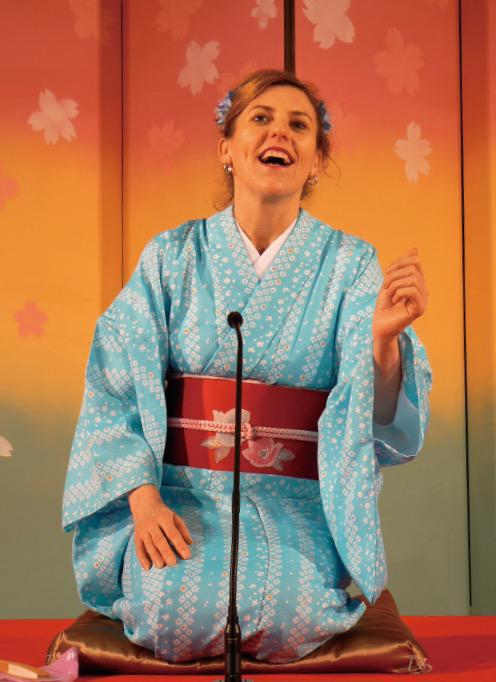 When she saw Shijaku’s performance, she fell in love with rakugo. “It was very organic and fresh,” she said. “It was one person sitting on a cushion. With a fan and a folded cloth, he took the listeners on a journey.” Diane also found that rakugo matched her humorous personality and strengthened her. “Since childhood, I have enjoyed making people laugh,” Diane said. “But when I was a child, I did not have a lot of confidence.” Through rakugo, she discovered selfconfidence. She also found her goal in life—to make people smile.