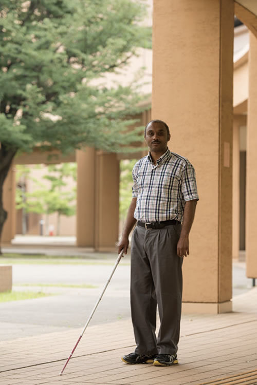 Mohamed Omer Abdin is a specially appointed assistant professor at the Tokyo University of Foreign Studies who arrived in Japan from Sudan in 1998. Legally blind, Abdin first came to Japan to study acupuncture and moxibustion at a school for the visually impaired offering courses in this field to international students.