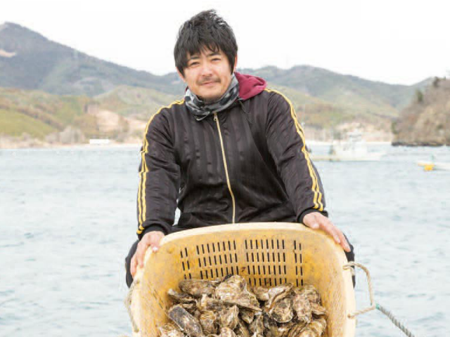 Kazuki Suzuki and his freshly harvested farmed oysters.