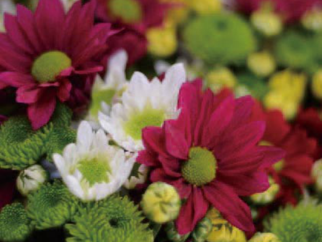 Students make bouquets of chrysanthemums and discuss ideas on how to turn them into products.