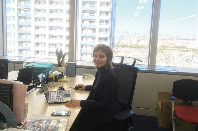 After getting her master of arts degree, Daria decided to tackle the challenge of job hunting to get hired and work at a Japanese company, just like Japanese students. She got a job at an automobile manufacturer after passing the employment examination and interviews with flying colors. This year she changed employers inside the same industry, taking a job at a truck and bus manufacturer, where she is now, as in her previous working place, responsible for the Russian market. Her responsibilities cover a wide range, including surveys and analysis of market trends and of moves by rival companies, support for the launch of new products, and the handling of official paperwork for shipments. She explains, “I’m continuing to work in Japan because I like the Japanese culture of so-called monozukuri —the traditional culture of craftsmanship that helps even now to enhance Japan’s manufacturing production. It makes me happy to be involved in making things, and this gives me motivation to work.”