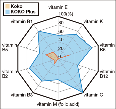 The nutritional composition of koko and of koko supplemented with KOKO Plus, calcula ted as percentages of the World Health Organization’s infant feeding recommendation.