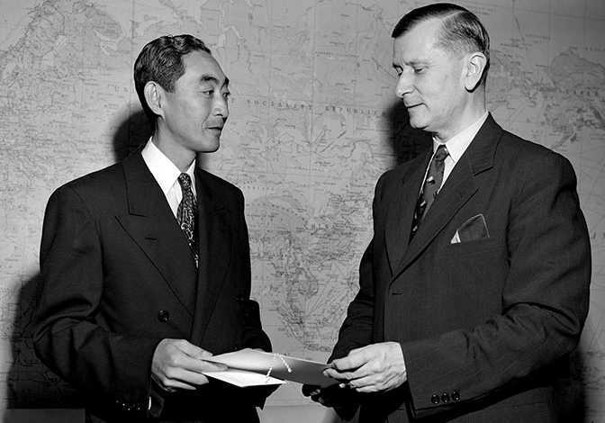 Hisanaga Shimazu, Japan’s consul general in New York, submits Japan’s application to the UN (June 23, 1952).