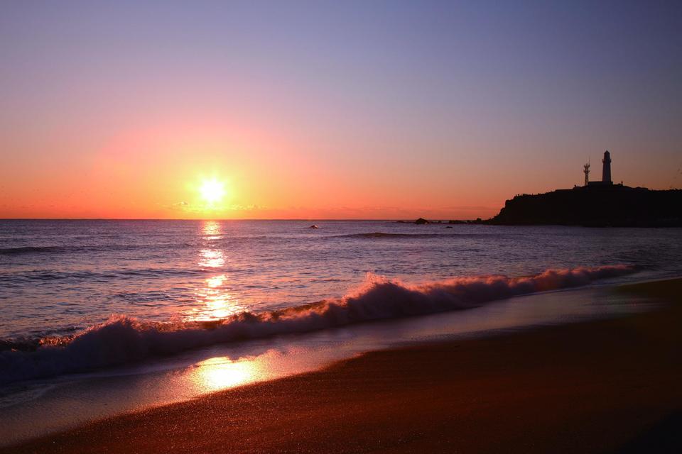 Cape Inubosaki in Choshi, Chiba Prefecture, is located about 100 kilometers (60 miles) east of Tokyo and 50 km (30 miles) east of Narita International Airport. It is famous as the location where the New Year’s sun rises first on the Japanese mainland. Making one’s New Year’s resolutions while watching the first sunrise of the year is a Japanese custom, and on the morning of January 1 Cape Inubosaki is thronged with visitors from around the country. At the tip of the cape is historic Inubosaki Lighthouse, built in 1874. The sight of the sun rising beyond this lighthouse over the vast Pacific offers the many visitors a captivating scene.