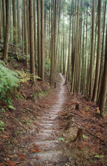The still largely deserted routes were newly signposted in English, and the occasional Japanese pilgrims encountered were warmly encouraging. Tourists descending from tour buses at major shrines expressed surprise and admiration to see us emerge from the surrounding forest having traveled the traditional way.