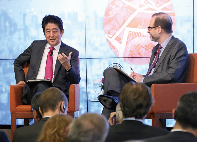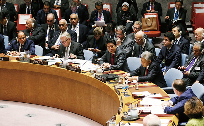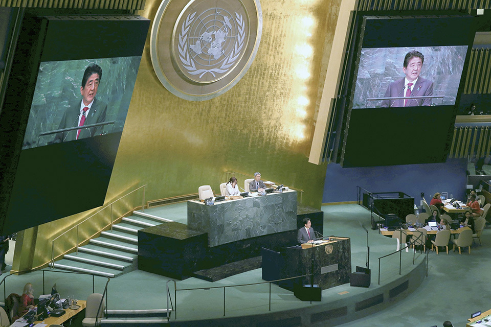 Prime Minister Shinzo Abe visited New York City to attend the 71st Session of the United Nations General Assembly and delivered an address at the General Debate (September 2016).