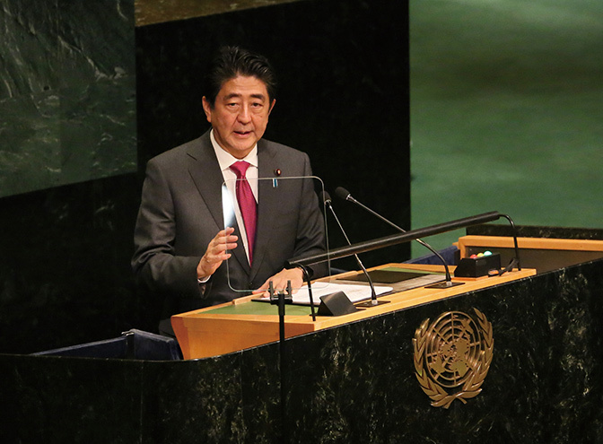 The Government of Japan will accelerate the work towards early conclusion of the Paris Agreement on climate change and will carry out without fail its pledge to provide 1.3 trillion yen of assistance for developing countries in 2020. Japan will spare no effort in strengthening the United Nations in the 60 years to come just as it did over the past 60 years.