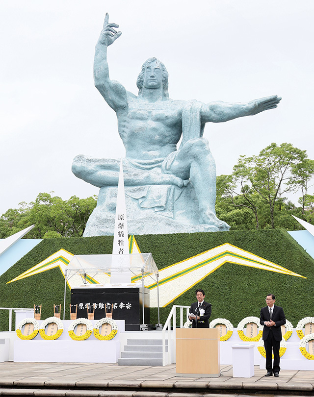 Participating in the Hiroshima Peace Memorial Ceremony held in Peace Memorial Park in Hiroshima City. Seventy-two years have passed since an atomic bomb was dropped on Hiroshima on August 6, 1945. (August 2017)