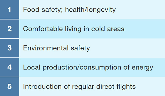 Hokkaido is currently promoting an initiative known as the Five-Point Cooperative Package to encourage further economic exchanges with the Russian Far East. At the May 2016 summit meeting between Japanese Prime Minister Shinzo Abe and Russian President Vladimir Putin, the Japanese government presented an Eight-Bullet-Point Proposal for Economic Cooperation with Russia. Governor Takahashi states, “The Five-Point Cooperative Package covers such areas as the promotion of food safety, health, and longevity, along with technology for comfortable living in cold areas—items shared with the Japanese government’s Eight-Bullet-Point Proposal for Economic Cooperation with Russia. Hokkaido intends to leverage these initiatives in working to step up the pace of exchanges.”
