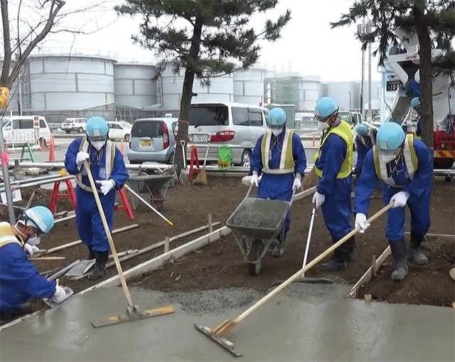 Currently, about 6,000 workers are proceeding safely and steadily with decommissioning work at the site of the power station. Initially they needed to wear protective clothing, but their workplace environment has improved, and now they can wear ordinary uniforms in about 90% of their work area.
