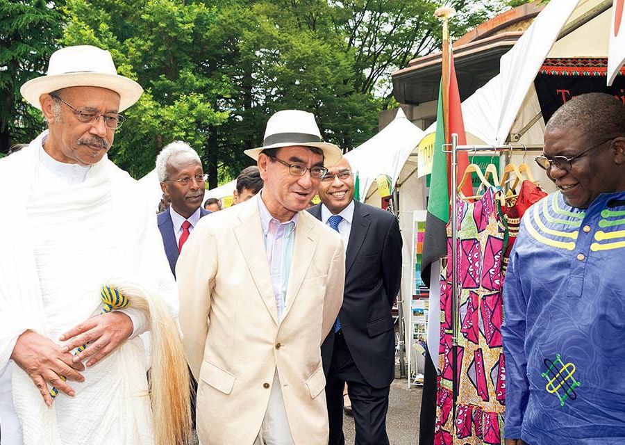 The Africa Now festival, held in Hibiya Park, June 2018. In the event, live music, dancing, tourism and handicrafts were introduced. Japan’s Foreign Minister, Taro Kono, attended the opening of the event and visited each booth of 38 African Embassies.