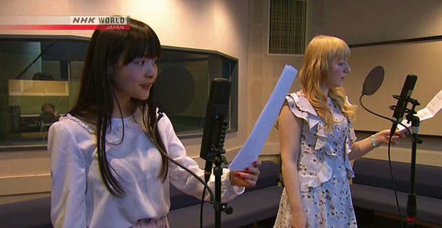 In the recording studio with fellow seiyu Sumire Uesaka. Jenya’s interview on NHK WORLD-JAPAN is available at: