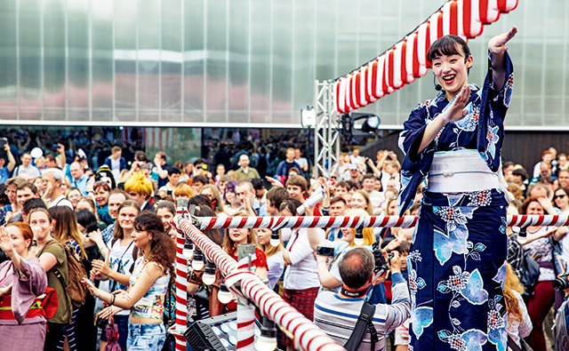 In July 2017, a Japanese culture festival based on the concept of Japanese summer festivals was held in Gorky Park in central Moscow. Following the lead of Japanese dancers on the stage, Russians joined in the traditional bon odori dance. In 2018, which is “Japan Year in Russia,” the festival is scheduled to be held again along with a variety of other Japan-related events.