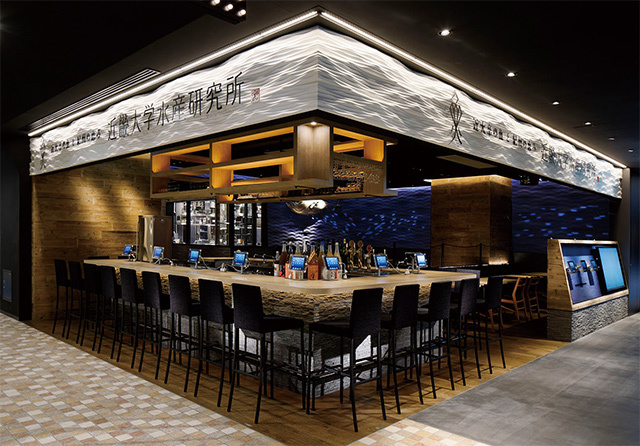 The “Kindai University Aquaculture Research Institute” restaurant Osaka branch. Its mission is “putting ‘learning for the real world’ into practice for future research.”