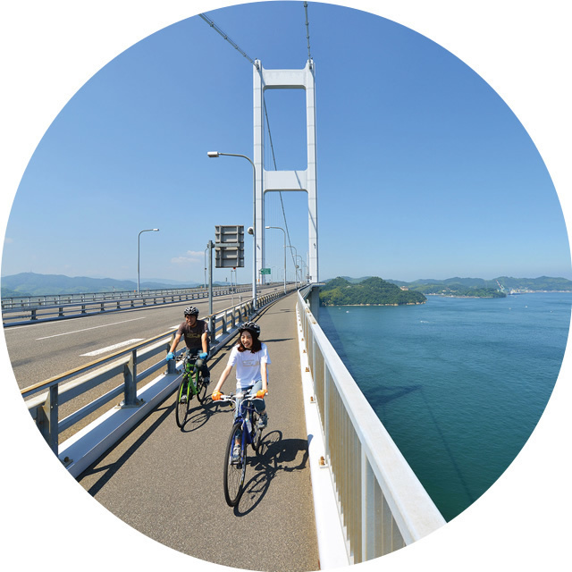 The Seto Inland Sea is a virtual utopia for cyclists. One of cyclists’ many touring options is the 70-kilometer (43-mile) Shimanami Kaido highway linking the city of Onomichi in Hiroshima Prefecture and the city of Imabari in Ehime Prefecture. With a route linking islands directly above the waters of the sea, it features special lanes for cyclists and pedestrians and can be enjoyed by everyone from beginning cyclists to seasoned athletes. One-way bicycle rentals are also possible. Visitors can cross the bridges between islands, basking in the mild climate of the Seto Inland Sea while being invigorated by the feeling of flying above the sea waters. A trip only cyclists can experience, permeated by the gentle daily rhythms of the islands, awaits tourists.
