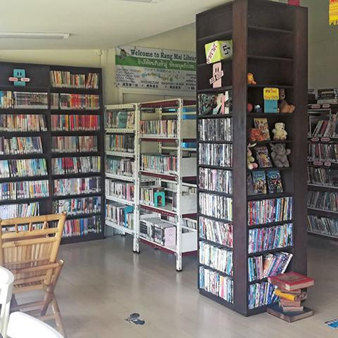 The Rang Mai Library containing a lot of books and DVDs. According to Horiuchi, children make friends with other bookworms through the library.