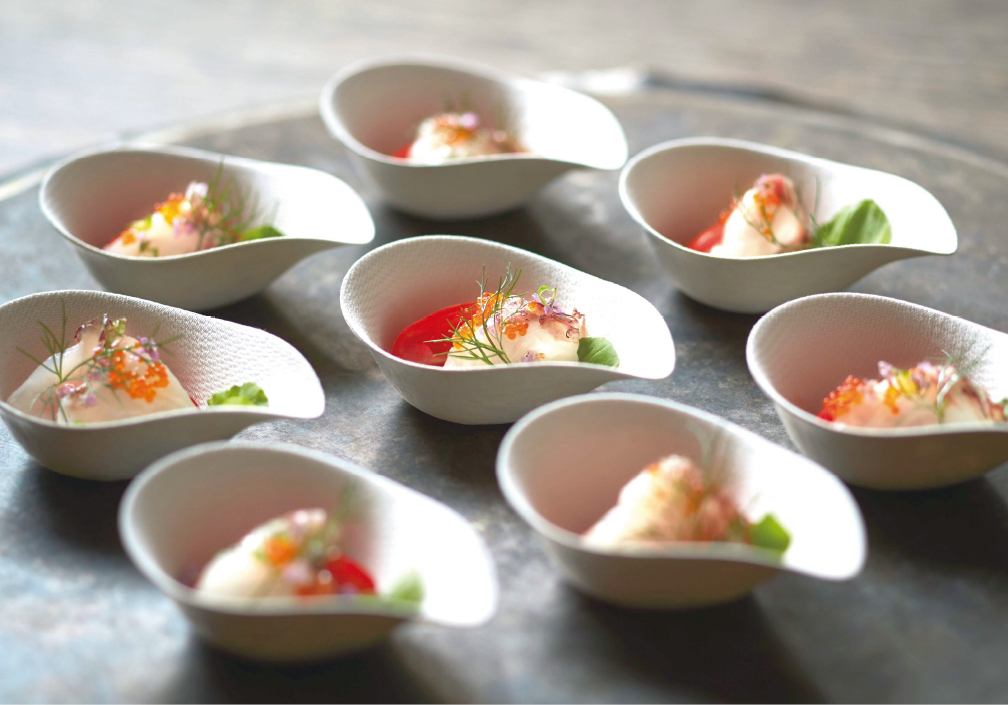 Another company's experiment seeks to address plastic waste through yet another approach. The most interesting thing about Wasara, paper tableware that still looks stylish even when stacked with hors d'oeuvres, is that it is made from bamboo fiber and bagasse, a fiber derived from sugarcane. After primary fermentation for 25 days and secondary fermentation for 60 days, the material returns to the soil. This makes Wasara sustainable tableware that can be disposed of without producing garbage.