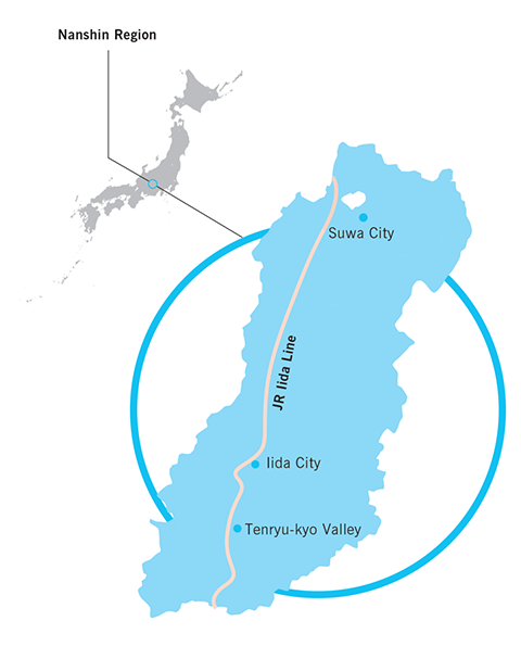 The Nanshin Region, nestled between two 3,000-meter-high mountain ranges located almost in the center of the Japanese archipelago, offers magnificent beauty and preserves its old farming village traditions such as original folk customs