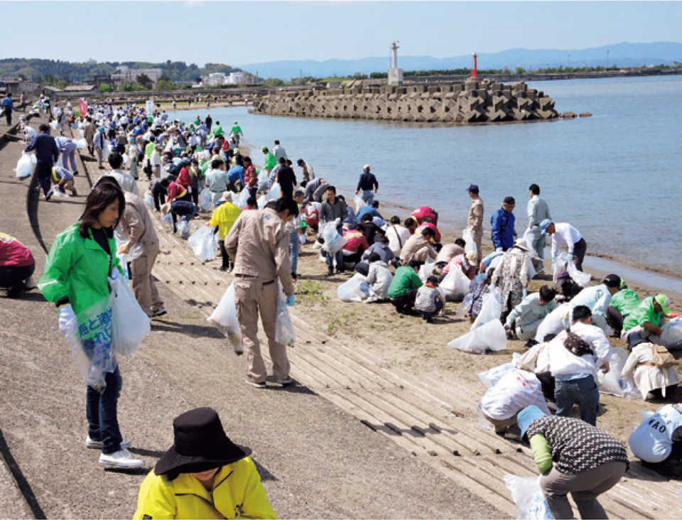 About 120,000 people participated at various times in Toyama Prefecture’s coastal cleanup campaign in 2015, recovering 91 tons of garbage. Many local residents readily participate in cleanup activities.
