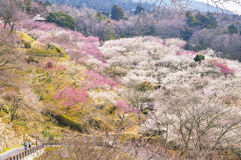 Tsukuba City in Ibaraki Prefecture, where the Ministerial Meeting on Trade and Digital Economy will be held as part of G20 2019 JAPAN on June 8 and 9, 2019, lies about 50 km northeast of Tokyo. The plum groves that grace the mid-reaches of Mt. Tsukuba feature white, red, and green flowering plum trees that bloom in succession from the end of January to the end of March, filling the slopes with the delicate fragrance of plum blossoms. In fine weather, one can see all the way to TOKYO SKYTREE and Mt. Fuji from the observation deck.