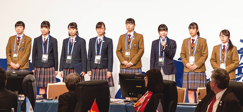 At the G20 Health Ministers’ Meeting held in Okayama Prefecture, students from three schools gave a joint presentation on “health care and medical issues affecting women and children.” These issues were deeply related to a ministers’ meeting theme: universal health coverage.