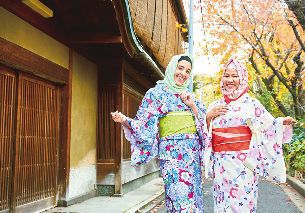 Matching Hijabs and Kimono in Kyoto