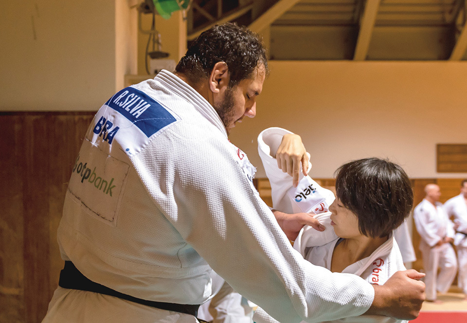 Rafael Silva, a judoka in the over 100 kg division who stands more than two meters tall, listens attentively to Fujii’s advice.