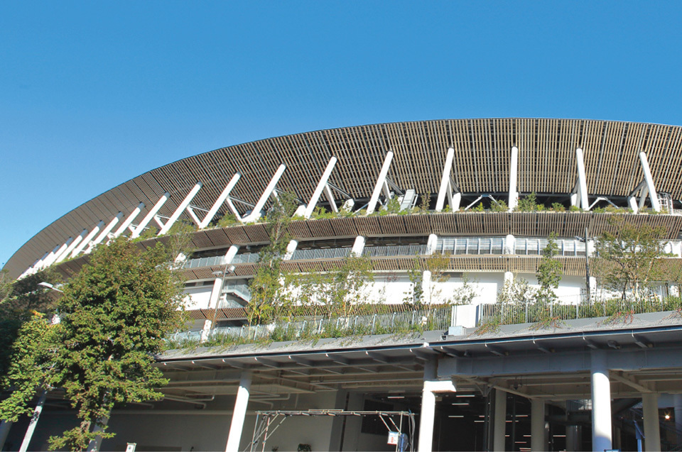The main venue, the Olympic Stadium, was completed in November 2019. Both people-friendly and environmentally-friendly, the universal stadium was finished with a “Stadium in Forest” concept. Traditional Japanese architectural knowledge has been used throughout the structure that blends in with the natural surroundings. The entrance gate to the stadium uses a huge amount of domestic timber, including wood from areas recovering from the great earthquakes, or more specifically, Aomori, Iwate, Miyagi and Kumamoto Prefecture. The background to this is an important concept for the Games, dubbed the “Recovery and Reconstruction Games.”